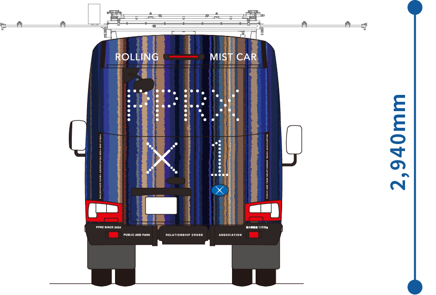 基本的には右・左・後方の3方向からミストを噴射します。1面または2面噴射を行わないことも可能です。また、配管を延長することで、車体から離れた場所へミストを出すこともできます。